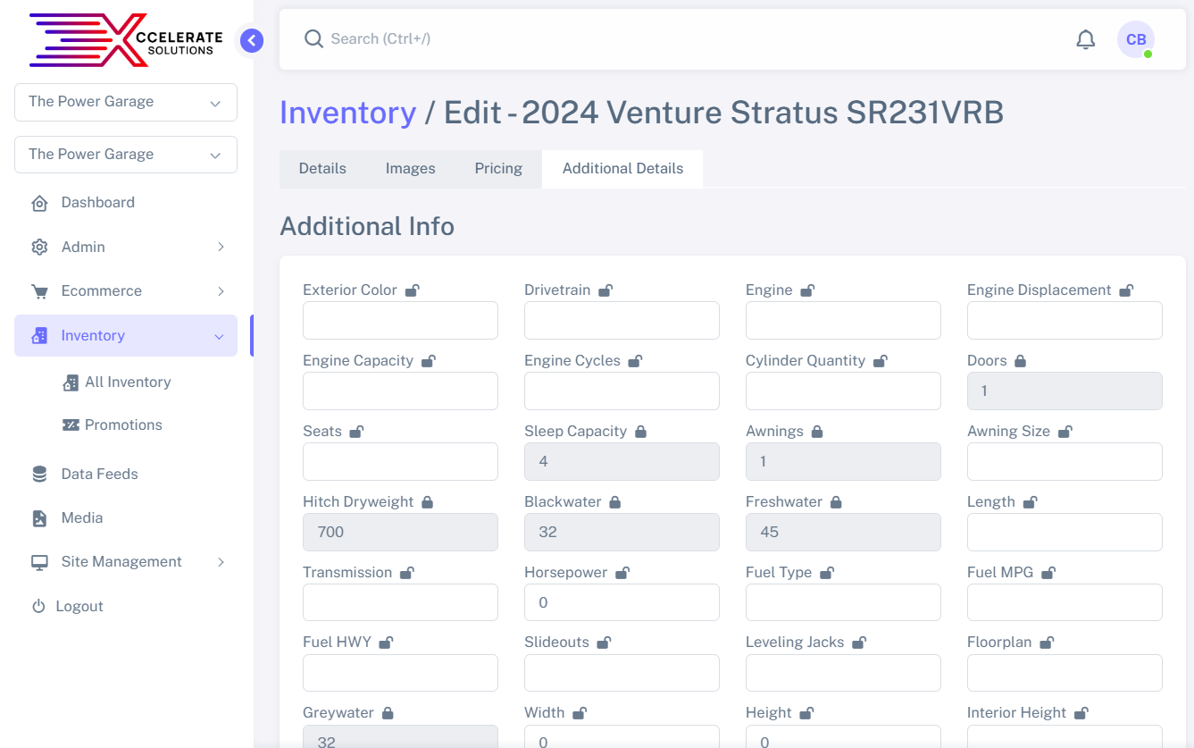 Xccelerate has integrated with the DMS providers and inventory lot service companies in the RV industry so that we can receive your inventory feed from any vendor in the market space. Don’t have an inventory feed yet? That’s okay, we have you covered! With an Xccelerate RV Website, you will be able to add inventory to your website right from the backend admin of your site! Just provide the year, make, and model of your RV, and our system will be able to append that information with manufacturer data such as: