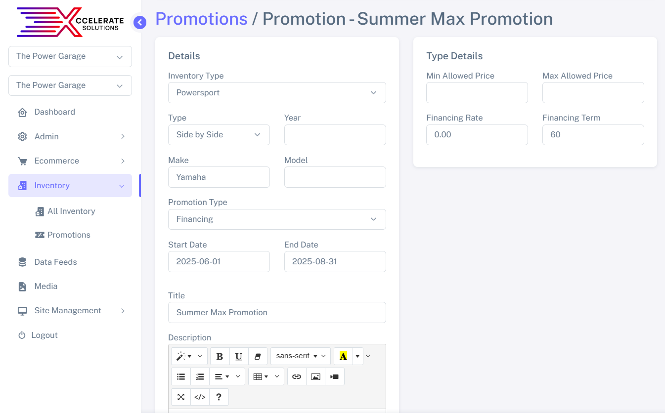 Even if we receive an automated feed so your inventory coming in from a third party is always updated as often as possible, you still can manage the existing inventory through your RV Website admin panel. You can modify price, features, photos, etc, and lock in your manual changes so they won’t be overwritten by the next data feed update! Our RV Website gives RV Dealers the most power and flexibility when it comes to managing their dealership’s inventory on their Xccelerate RV Website.